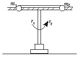 在光滑杆上穿着两个小球m1、m2,且m1=2m2,用细线把两球连起来,当盘架匀速转动时,两小球刚好能与杆保持无相对滑动,如图所示,此时两小球到转轴的距离r1与r2之比为