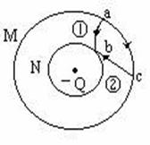 如图5所示,在点电荷-Q的电场中,M,N是两个等势面.现将一点电荷+q,从a点分别经路径①和路径②(经过C点)移到b点,在这两个过程中:( )