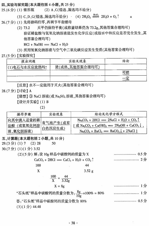 30.(7分)今年全国人大和政协会议使用了一种含碳酸钙的“石头纸”:为测定其中碳酸钙的含量,课外活动小组的同学称取50g碎纸样品。分别在5只烧杯中进行了实验,实验数据见下表(假设纸张其他成分既不溶于水,也不与水反应):