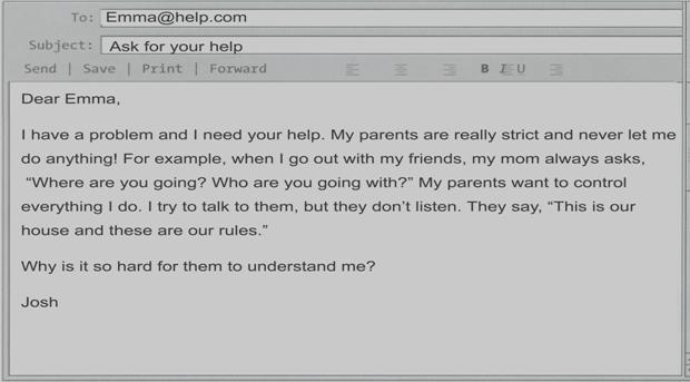 假设你是Emma,你的笔友Josh给你写了一封电子邮件,向你倾诉他在家里的一些烦恼。请根据来信和提示,给Josh回一封电子邮件。先说说你的看法,再给出建议,并适当发挥。