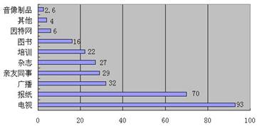 (2)公众科学素养事关国家的竞争力。下面是某部门对“我国公众获得科学技术信息的渠道”的调查情况统计表,请写出你从中得出的结论。(2分)
