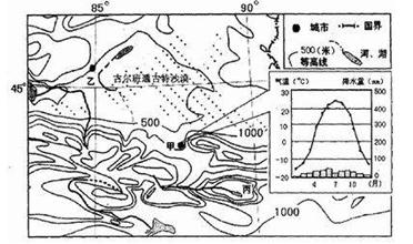 4.(山东省济南市2010年高考三模拟)读我国某区域等高线地形图和城市气候统计图。回答下列问题。