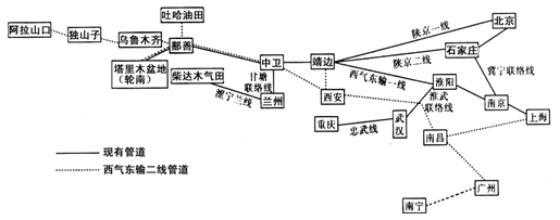 (四川内江市2010届高中三年级第三次模拟试题文综试题)读我国西气东输二线管道初步走向示意图。回答1-3题。