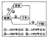 (2010 江苏扬州三模)读“世界汽车产业四次大转移示意图”,完成6-7题。