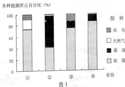 [解析]根据四川的能源生产结构判断①天然气比重在四省中突出,同时拥有煤炭和水电判断为四川,②原油比重占主导地位判断为黑龙江,③煤炭虽占主导地位,但是水电比重在四省中最大判断为甘肃,④原煤占比重最大为河北。
