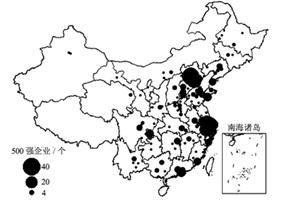 [解析]本题考查我国工业生产中500强企业的空间分布、迁移特点、迁移作用的相关知识,解答本题关键是读图,在图中可以看出我国500强的大企业主要集中分布在东南沿海地区和省会、直辖市等特大城市,这与这些城市的科技、劳动力素质、交通、市场、基础设施、信息的通达度等密切相关;对于其迁移方向可从图中读出。