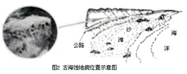 某校地理小组学生在滨海公路沿线的山坡上,看到了几千年前形成的海浪侵蚀地貌。结合图文材料,回答第3题。