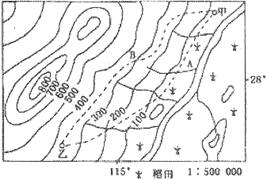 [解析]从经纬网位置确定该地位于南方低山丘陵区而非山东丘陵,该地山体坡度较大,如果山上修筑梯田可诱发水土流失,公路A、B线之间的坡度没有太大差别。