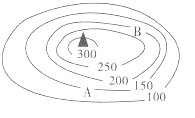 右图为安徽某地(31°N)某座山峰的等高线示意图(单位:米),AB为两处风景点沿虚线A处。读图回答24-25题。
