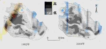 A.高低变化与地表起伏呈正相关 B.高值区变化是气候变暖的结果