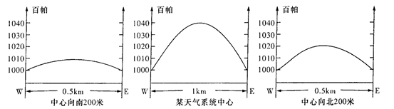[解析]从图中看:中心气压最高可达1040百帕,这是一高压系统,距中心正南200米处的气压在1010百帕左右气压差达30百帕,距中心正北200米处气压在1020百帕左右,正南方向与中心的气压差最大,因此风力也最大。