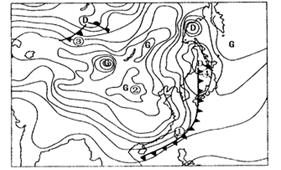 (2010 上海市浦东二模)读北半球某地区某时地面天气图。回答24-25题。