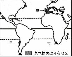 (2009学年度第二学期徐汇区高三地理学习能力诊断卷2010.4)读世界某气候类型局部地区分布示意图,回答31-33题。