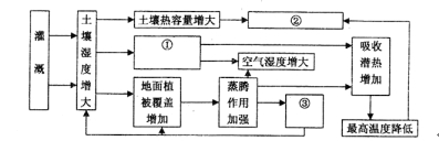 [解析]土壤湿度的增大会使地面蒸发的水量增多,土壤热容量的增大会使气温变幅减小,植物蒸腾作用的加强会使降水增加,这体现了地理环境的整体性。