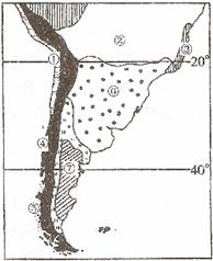 [解析]由沿海到内陆的地域分异规律是指地理环境要素东西向随着距离海洋由近及远而产生的环境变化规律,垂直地域分异规律是指在山区由山麓地带到山顶的一种变化,①和③分别是热带沙漠带和热带雨林带,①的形成与秘鲁寒流有关,③的形成受巴西暖流的影响,⑥地自然带是温带草原带,⑦是温带荒漠带。