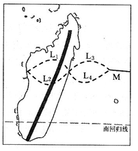 (福建泉州一中2010届高三毕业班高考临考最后一卷文综)读马达加斯加岛略图,图中粗黑线为山脉,M为20℃等温线。据图回答11题。