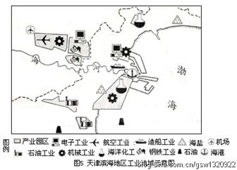 9.图5所示工业部门集聚的主要原因,是共同利用了天津滨海地区的 A.原料 B.基础设施 C.燃料 D.消费市场 [答案]B