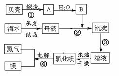 (8分)海水中含有丰富的化学元素,如图是某化工厂利用海水的生产镁的流程简图,请回答: