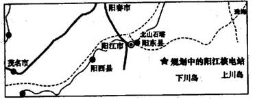 2007年9月26日,中国最大的核电项目--广东阳江核电站一期工程核岛负挖开工,这标志着该核电站已正式进入主体工程开工准备阶段。据此回答29-30题。