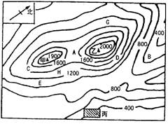 (1)图中有缓坡、陡坡、鞍部、山脊和山谷。试判明: