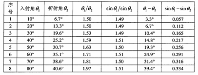 14.某研究性学习小组在探究光的折射过程中,研究折射角与入射角之间的关系,当光由空气斜射入玻璃中时,测得实验数据如下表