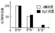 (2)右图表示不同基因型小鼠血浆中G酶浓度和H2S浓度的关系。据图描述B+ B+ 和B+ B-个体的基因型、G酶浓度与H2S浓度之间的关系:__________________________________________。B- B-个体的血浆中没有G酶而仍有少量H2S产生,可能的原因是___________ _。