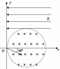 22.(20分)如图所示,真空中有(,0)为圆心,半径为的圆柱形匀强磁场区域,磁场的磁感应强度大小为B,方向垂直于纸面向里,在