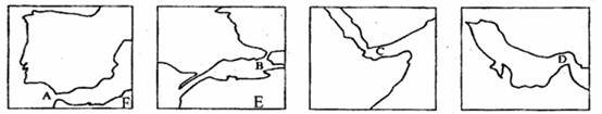 (1)沟通阿拉伯海和红海的海峡是 ,图中代号是 ;沟通地中海和大西洋的海峡是 ,代号是 ;跨越两大洲又位于同一个国家内的海峡是 ,图中代号是 ;周围沙漠气候广布,附近义盛产石油的海峡是 ,图中代号是 。
