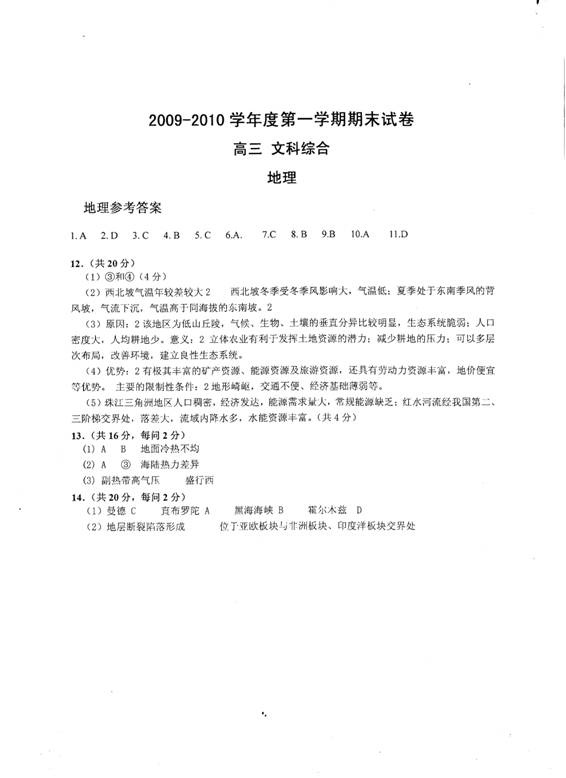 (2)如果此图是冬季风环流的侧视图,根据热力环流原理,A、B两地中 可能是亚洲大陆,我们感受的西北风应是数字号 ,造成此季风环流的形成原因是