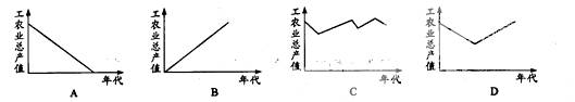 14.下图中,较正确地反映了“文革”期间我国工农业生产总值变化趋势的是( )