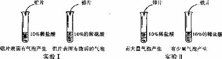 ①实验I反映了同种金属跟不同酸反应的剧烈程度不同;实验Ⅱ则表明了___ _剧烈程度不同,原因是