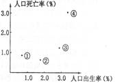 下图表示四个国家的人口出生率和死亡率,其中人口
