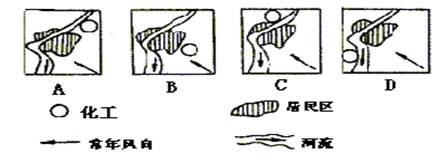 5、从环境效益考虑,下列四幅图中城镇工业布局合理的是
