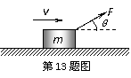 13.如图所示,质量为m的物体在一个与水平方向成θ角的拉力F作用下,一直沿水平面向右匀速运动,则下列关于物体在t时间内所受力的冲量的说法中正确的是:( )
