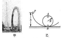 (12分)游乐场的过山车可以底朝上在圆轨道上运行,游客却不会掉下来(如图甲)。我们可以把它抽象成图乙所示的由曲面轨道和圆轨道平滑连接的模型(不计摩擦和空气阻力)。若质量为m的小球从曲面轨道上的P点由静止开始下滑,并且可以顺利通过半径为R的圆轨道的最高点A。已知P点与B点的高度差h=3R,求: