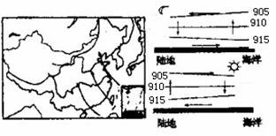 读右面某地4月某日海平面等压线分布图,据图回答21-22题。