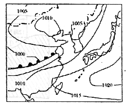 38.读右图“亚洲东部地区气压分布图(单位:百帕)”,分析回答下列问题。(14分)