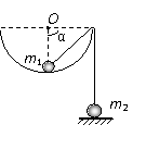 10.如图所示,一个半球形的碗放在桌面上,碗口水平, O点为其球心,碗的内表面及碗口光滑.一根细线跨在碗口上,线的两端分别系有质量为m1和m 2的小球.当它们处于平衡状态时,质量为m1的小球与O点的连线与水平线的夹角为α,质量为m2的小球位于水平地面上,设此时质量为m2的小球对地面压力大小为N,细线的拉力大小为T,则 ( )