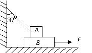 (12分)如图所示,A、B两物体叠放在水平地面上,已知A、B的质量分别为m A=20kg,mB=10kg,A、B之间,B与地面之间的动摩擦因数均为μ=0.5,一轻绳一端系住物体A,另一端固定在墙上,绳与竖直方向的夹角为370,今欲用外力F将物体B匀速向右拉出,(取g=10m/s2,sin370=0.6,cos370=0.8)求: