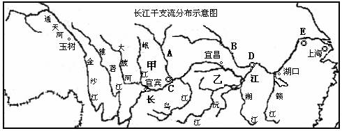 (1)如图所示的长江各大支流中,A是 江,它位于长江的 游(上、中、下);B是 江,它流经我国重要的棉花生产基地。(3分)
