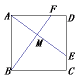 已知:正方形ABCD中,E、F分别是边CD、DA上的点,且CE=DF,AE与BF交于点M.
