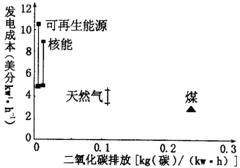 13.图中发电成本最低、二氧化碳排放量最多的能源是 ( )