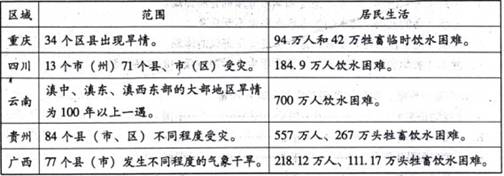 8.同学们收集到了下面关于今年西南地区旱灾情况的一则材料,请你用准确、简洁的语言概述这则材料所反映的主要信息。(2分)