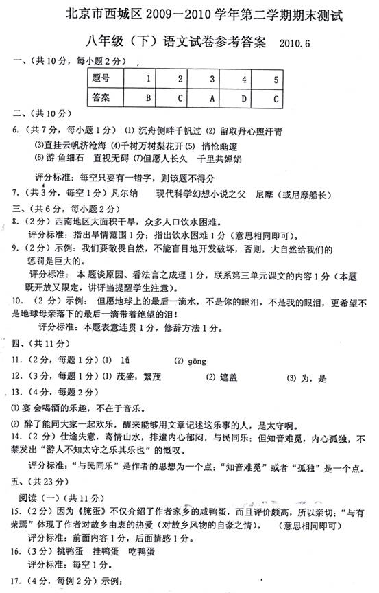 9.关于这次西南大旱的原因,有种种说法:西部的原始森林被破坏,取而代之的是具有经济价值的橡胶林、桉树林;水利工程的盲目上马……对此,你怎么看,请结合八下第三单元课文,谈谈自己的看法。(2分)