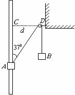 220.(山东省枣庄市2010届高三第一次模拟考试物理试题)如图所示,光滑固定的竖直杆上套有一个质量m=0.4kg的小物块A,不可伸长的轻质细绳通过固定在墙壁上、大小可忽略的定滑轮D,连接物块A和小物块B,虚线CD水平,间距d=1.2m,此时连接物块A的细绳与竖直杆的夹角为37