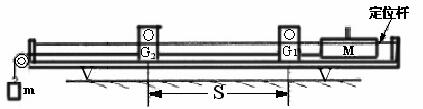 223.(吉林省吉林市普通中学2010届高三下学期期中教学质量检测试题) 为了探究加速度与力的关系,使用如图所示的气垫导轨装置进行实验.其中G1、G2为两个光电门,它们与数字计时器相连,当滑行器通过Gl、G2光电门时,光束被遮挡的时间△t1、△t2都可以被测量并记录.滑行器连同上面固定的一条形挡光片的总质量为M,挡光片宽度为D,光电门间距离为s,牵引砝码的质量为m。回答下列问题:
