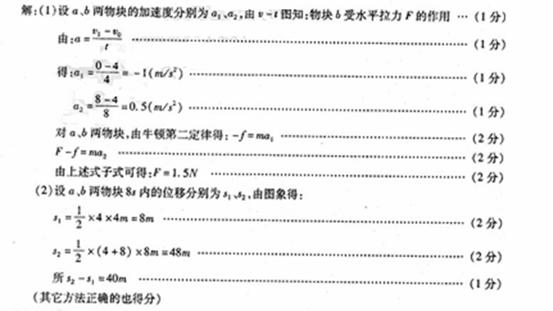 对A、B两物块由牛顿第二定律得: F-Ff=mal ③ (2分)