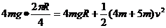 (甘肃省2010届高三第一次诊断试题(理综))如图所示,A、B两球质量分别为4m和5m,其间用轻绳连接,跨放在光滑的半圆柱体上(半圆柱体的半径为R)。两球从水平直径的两端由静止释放。已知重力加速度为g,圆周率用∏表示不需代入具体数值。当球A到达最高点C时,求: (1)球A的速度大小;2)球A对圆柱体的压力。