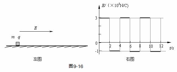 。从t=0时刻开始,空间加上一个如9-16右图所示的场强大小和方向呈周期性变化的电场,(取水平向右的方向为正方向,