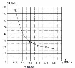 ②如图10-14所示,当1、2两端所加电压上升至2V时,控制开关自动启动照明系统,请利用下列器材设计一个简单电路。给1、2两端提供电压,要求当天色渐暗照度降低至1.0(Lx)时启动照明系统,在虚线框内完成电路原理图。